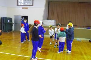 校庭に雪が積もる寒い日でしたが、とても楽しいなわとび集会でした。