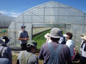 座学ではなく圃場見学をしながら、「太陽熱を利用した土壌消毒」や「ぼかし肥料の作り方」について学びました。