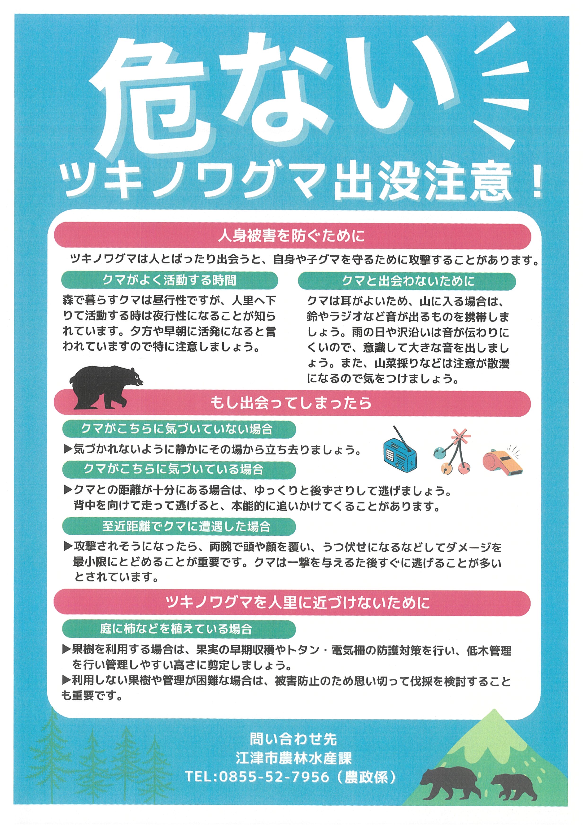 【チラシ】ツキノワグマに関する注意喚起について [その他のファイル:1014KB]