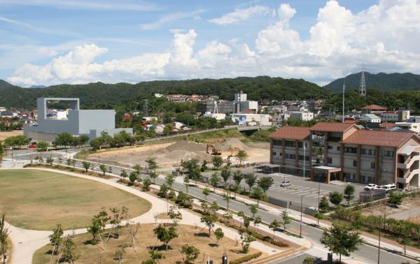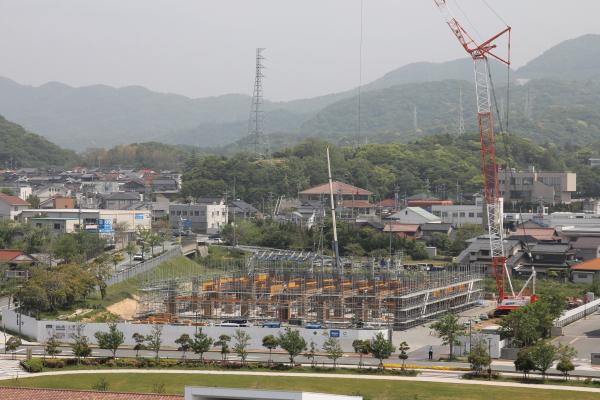 本庁舎棟は3階フロアの梁掛け、床盤掛けに入りました。付属棟は瓦ぶきが完了し、建設現場にいろどりが出てきました。(2020年7月30日現在)