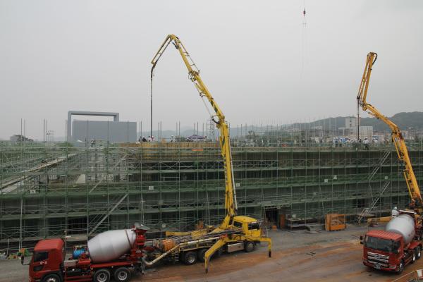 建築エリアを4つの工区に分割し、そのうち1工区と2工区で基礎コンクリートが打設されています。(2020年3月3日現在)