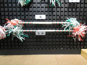 デッキスペースは神楽の練習や交流の場として多目的に利用することができます。現在、デッキスペースには鐘馗の様子を再現しており、衣装を近くで見ることもできます。また、神楽の様子のパネル展示も行っています。